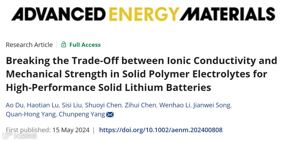 突破聚合物固态电解质离子导电性和机械强度两者掣肘,构建高性能固态锂电池