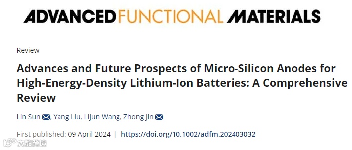 近日,来自盐城工学院的孙林教授与南京大学金钟教授合作,在国际知名期刊Advanced Functional Materials上发表题为“Advances and Future Prospects of Micro-Silicon Anodes for High-Energy-Density Lithium-ion Batteries: A Comprehensive Review”的综述论文。本文综合对比了纳米级硅材料和微米级硅材料的优缺点,详细介绍了大尺寸硅材料在高能量密度锂离子电池中更广阔的应用前景,这也是近年来研究的热点之一。并且从微米级硅材料的结构优化、硅复合等方面综合评述了相关的最新进展。除此之外,该综述还具体介绍了电池中除活性材料设计以外的其他重要影响指标,例如多功能粘结剂设计、新型电解质设计(包括全固态电池中的固态电解质)、先进的表征和人工智能辅助电极材料设计等。