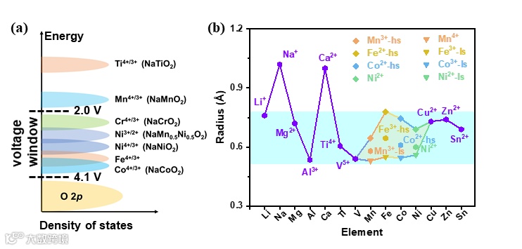 近日,扬州大学的王钦超博士、韩杰教授与京都大学的Yoshiharu Uchimoto教授合作,在国际知名期刊Nano Energy上发表题为“High-Entropy O3-Type Cathode Enabling Low-Temperature Performance for Sodium-Ion Batteries”文章。在这项工作中,他们重点研究了如何合理设计HEO正极材料以实现优异钠嵌入/脱出性能。HEO O3型正极的设计和合成围绕两个关键标准展开:高容量和高稳定性。增强活性过渡金属的氧化还原反应对提高容量至关重要,这是由它们的理论态密度(DOS)电子能级决定的。另一方面,提高O3结构在循环过程中的稳定性需要对TMO6八面体的化学环境进行微调。