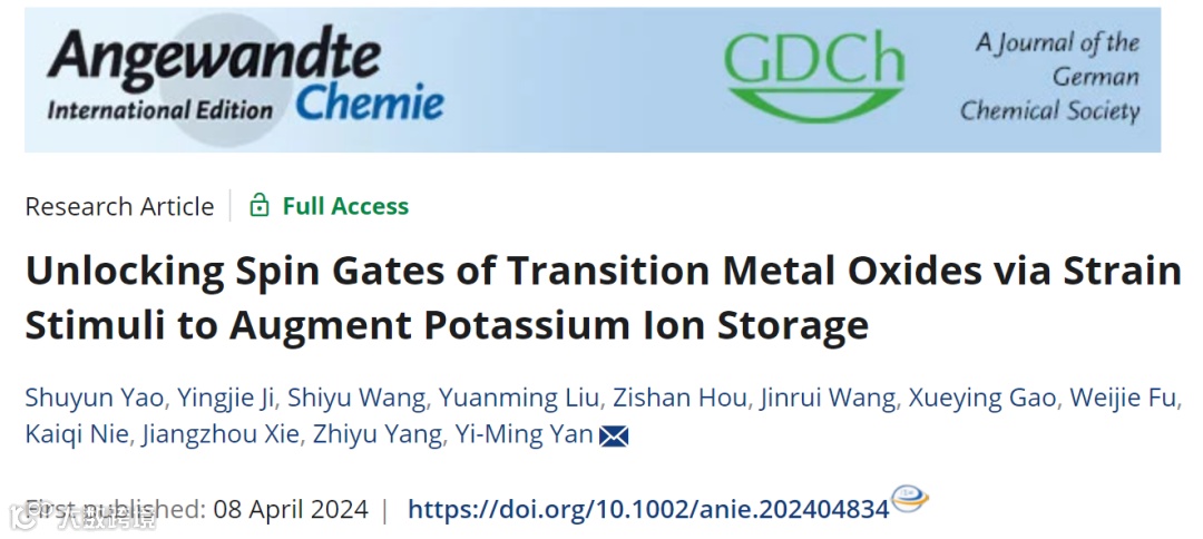 应变刺激解锁过渡金属氧化物的自旋门增强钾离子储存性能