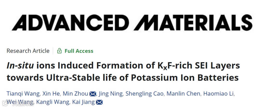 原位离子诱导策略辅助形成富F SEI层助力高性能钾离子电池