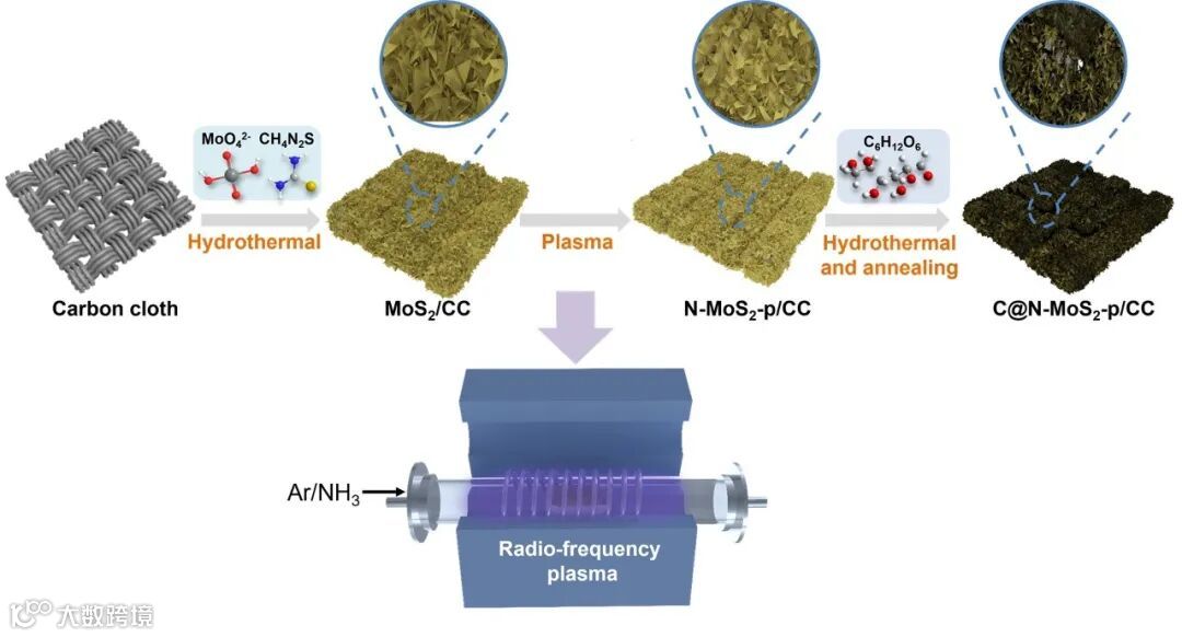 图1. C@N-MoS2-p/CC的合成路线。