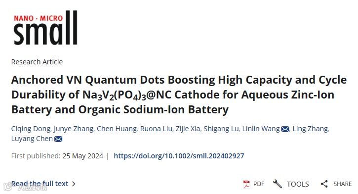 C. Dong, J. Zhang, C. Huang, R. Liu, Z. Xia, S. Lu, L. Wang, L. Zhang, L. Chen, Anchored VN Quantum Dots Boosting High Capacity and Cycle Durability of Na3V2(PO4)3@NC Cathode for Aqueous Zinc-Ion Battery and Organic Sodium-Ion Battery. Small 2024, 2402927.