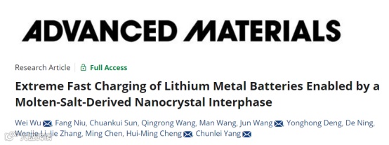 熔盐界面反应与衍生的纳米晶界面助力锂金属电池快充