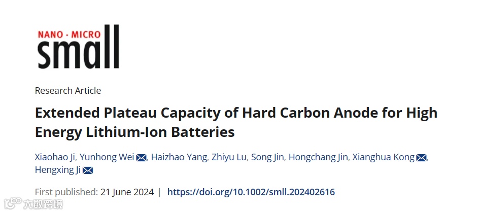 近日,来自合肥工业大学孔祥华教授联合中国科学技术大学季恒星教授和魏云虹特任副研究员,在国际知名期刊Small上发表题为“Extended Plateau Capacity of Hard Carbon Anode for High Energy Lithium-Ion Batteries”的研究文章。该工作通过水热预处理过程促进碳原子的分解运动以有序排列并诱导碳的杂化状态从sp3到sp2的转变,成功利用果胶为前驱体制备出了一种具有低缺陷含量、富含石墨微晶以及低比表面积的硬碳微球。合成的硬碳材料表现出优秀的储锂性能,在0.05 A g−1的电流密度下提供了537 mAh g−1的高可逆容量,同时平台容量占比达到55%,首次库伦效率达到66%。此外,结合原位拉曼和核磁共振光谱表征揭示了硬碳储锂的“吸附-插层”机制,建立了硬碳微观结构与其充放电过程中的平台及斜坡区域之间的对应关系。