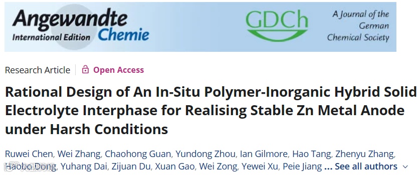 原位构筑聚合物-无机杂化SEI实现苛刻条件下稳定的锌金属阳极