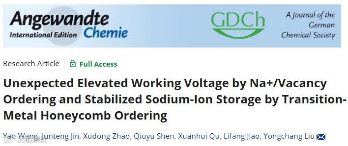 Yao Wang, Junteng Jin, Xudong Zhao, Qiuyu Shen, Xuanhui Qu, Lifang Jiao, Yongchang Liu*, Unexpected Elevated Working Voltage by Na+/Vacancy Ordering and Stabilized Sodium-Ion Storage by Transition-Metal Honeycomb Ordering, Angew. Chem., Int. Ed. https://doi.org/10.1002/anie.202409152