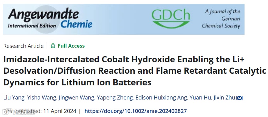 咪唑插层氢氧化钴在锂离子电池中增强Li+脱溶/扩散反应和阻燃催化动力学