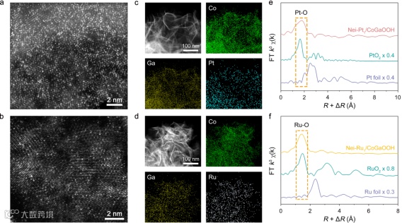鉴于高密度Ir单原子间的近邻协同效应对催化剂性能具有重大影响,我们进一步将高密度单原子的合成策略扩展到更多种类的金属。通过相似的合成策略,成功制备了高密度单原子催化剂Nei-Pt1/CoGaOOH和Nei-Ru1/CoGaOOH,表明增强锚定位点和单原子前驱体之间的结合强度,构筑高密度单原子催化剂的合成策略具有一定的普适性(图6a-f)。