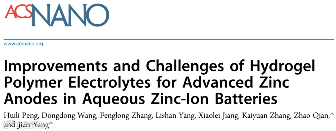 近日,临沂大学彭慧丽与山东大学钱钊教授、杨剑教授在国际知名期刊ACS Nano上发表综述“Improvements and Challenges of Hydrogel Polymer Electrolytes for Advanced Zinc Anodes in Aqueous Zinc-Ion Batteries”。该综述讨论了凝胶电解质在水系锌离子电池中的应用和最新进展,重点分析了凝胶电解质对锌负极的影响和作用机理。最后,讨论了凝胶电解质面临的挑战和发展前景。
