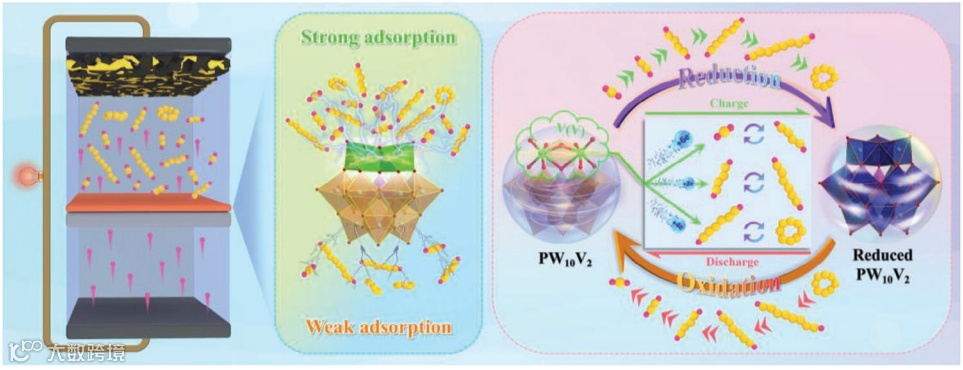 图1. Co-NCs/PW10V2改性隔膜在室温钠硫电池中的吸附及催化机理示意图