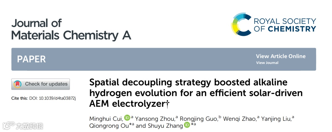 近日,来自复旦大学的区琼荣和张树宇课题组,在国际知名期刊Journal of Materials Chemistry A上发表题为“Spatial decoupling strategy boosted alkaline hydrogen evolution for an efficient solar-driven an AEM electrolyzer”的文章。该文章提出了一种空间解耦策略,大幅提升贵金属催化剂在碱性环境中的析氢反应活性,创新地应用于太阳能驱动的AEM电解槽,实现高效绿色制氢。