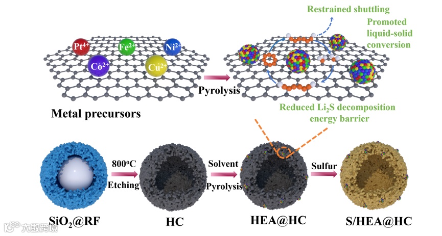 图1. S/HEA@HC复合材料的合成过程示意图