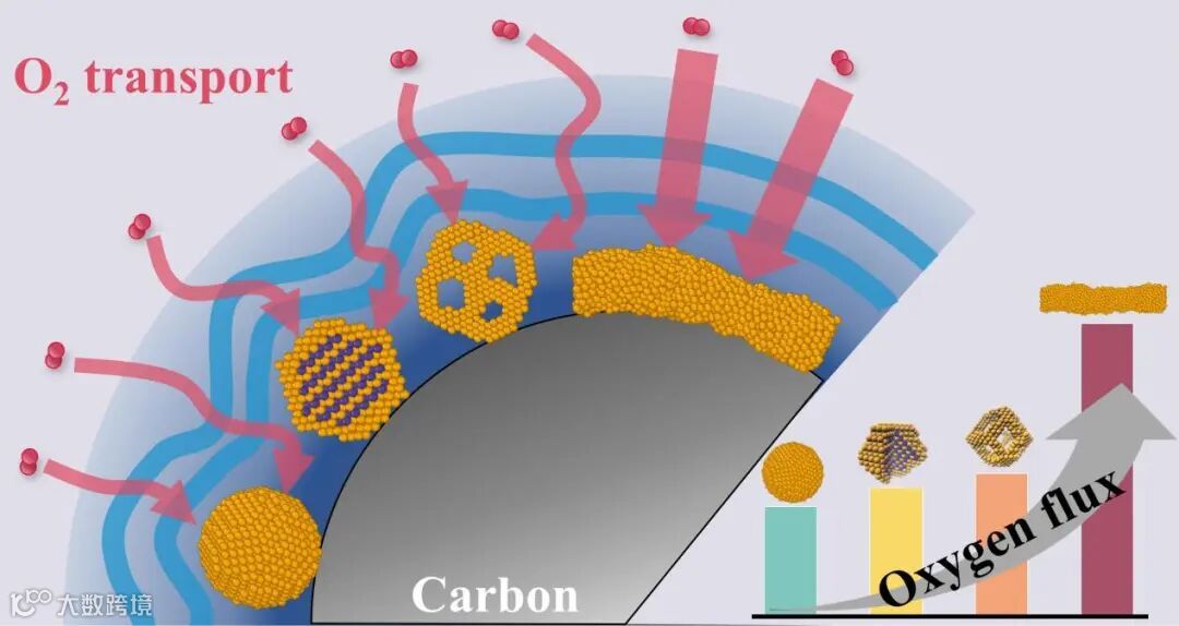 四种催化剂周围跨电解质膜的氧气传输通量以及氧气传输机理。
