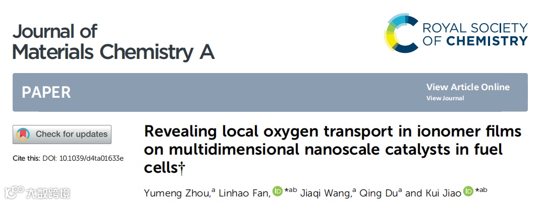 近日,来自天津大学的焦魁教授和助理研究员樊林浩,在国际知名期刊Journal of Materials Chemistry A上发表题为“Revealing local oxygen transport in ionomer films on multidimensional nanoscale catalysts in fuel cells”的文章。该文章分析了不同的多维催化剂结构对局部氧气传输的影响,同时为开发新型催化剂提出了建议。