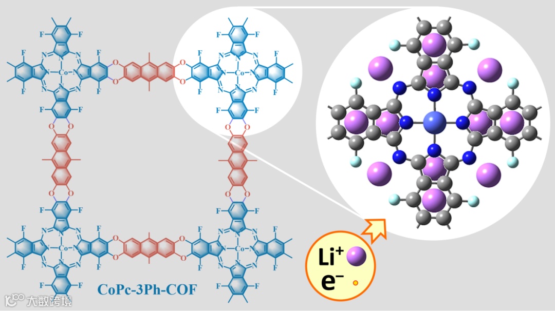 图1. 共轭酞菁基介孔COFs的结构以及锂离子存储示意图