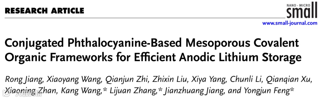 基于此,来自北京化工大学的冯拥军教授、中国科学院过程工程研究所张丽娟研究员与北京科技大学的王康教授合作,在国际知名期刊Small上发表题为“Conjugated Phthalocyanine-Based Mesoporous Covalent Organic Frameworks for Efficient Anodic Lithium Storage”的文章。该文章深入讨论该类材料的循环稳定性与导电性。