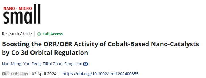 近日,北京科技大学的连芳课题组,在国际知名期刊Small上发表题为“Boosting the ORR/OER Activity of Cobalt-Based Nano-Catalysts by Co 3d Orbital Regulation”的研究文章,该研究在Co-S配位的基础上,引入不饱和的Co-Nx-C配位,合成新型Co-S@NC催化剂,其中钴离子的3d电子轨道结构向高自旋态转变,材料体系中同时存在dπ轨道占据情况不同的Co2+和Co3+,从而提高了改材料的d带中心,显著提升了材料体系的ORR/OER本征催化活性。