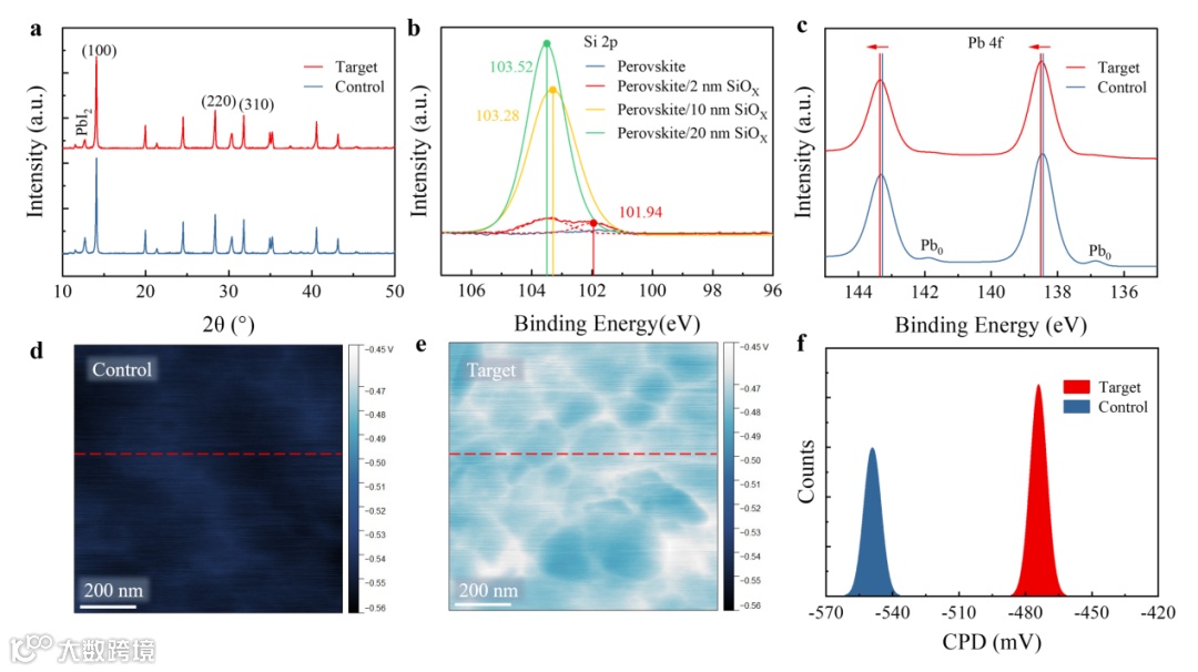 图2 SiOX层对钙钛矿表面的化学作用及其沉积后表面电势的变化