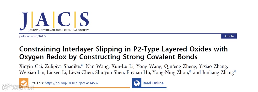 近日,上海交通大学章俊良教授、祖丽皮亚·沙地克副教授与复旦大学周永宁教授在国际知名期刊Journal of the American Chemical Society上发表题为“Constraining Interlayer Slipping in P2-Type Layered Oxides with Oxygen Redox by Constructing Strong Covalent Bonds”的研究型文章。文章提出通过在P2型层状正极中引入强离子势的梯元素及具有强共价作用的SbO6八面体,可以将充放电过程中的OP4相转变调控为Z相转变。相比于OP4相,Z相转变过程中的层间滑移更小,可以有效缓解层状晶格中的应力,降低Na离子扩散势垒,使得电池展现出了快速的充放电特性(约10C倍率下容量可达79 mAh g−1)。此外,作者通过组装软包电池(55 mAh)证明了正极的实际应用的潜力,能量密度(基于正极计算)约487 Wh kg−1。该文章聚焦钠离子电池层状氧化物正极的阴离子氧化还原过程,系统性研究了层状氧化物充放电过程中的相转变形成和氧电子结构变化之间的内在联系。