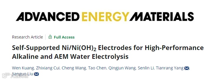 近日,来自华北电力大学的杨天让副教授和刘建国教授,在国际知名期刊Advanced Energy Materials上发表题为“Self-Supported Ni/Ni(OH)2 Electrodes for High Performance Alkaline and AEM Water Electrolysis”的文章。该文章分析商业碱性水电解电极在界面接触、气泡传输和动态运行稳定性等方面弊端,创新性提出新型电极的制备思路及方法。相关工作还获得了国内及美国发明专利授权。