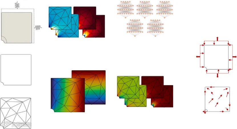 通过数值基准实验,学习如何评估 ICNN 基构模型的准确性、泛化能力和在有限元模拟中的部署效果,理解 ECNN 中应变和外力作为输入,应力作为内部变量的处理方式,以及平衡方程作为约束的嵌入方式,掌握基于扩展有限元法(XFEM)的断裂力学模型,包括其模拟多裂纹扩展和聚结的能力,以及计算应力强度因子的方法
