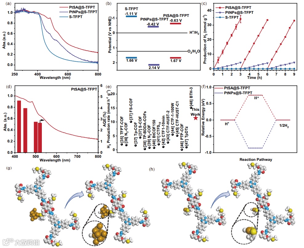 含硫COFs中低价Pt单原子助力光催化析氢!
