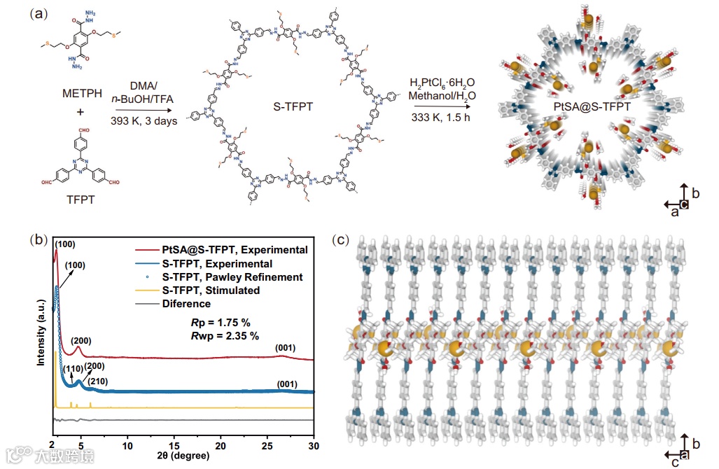 图1. PtSA@S-TFPT的合成过程示意图及结构分析