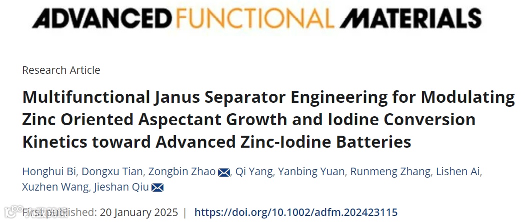 多功能Janus隔膜工程调控锌取向生长并促进碘转化动力学助力先进的锌-碘电池