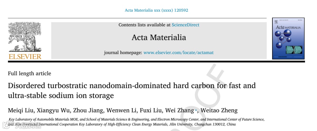 基于此,来自吉林大学的张伟教授课题组,在国际知名期刊Acta Materialia上发表题为“Disordered turbostratic nanodomain-dominated hard carbon for fast and ultra-stable sodium ion storage”的文章。成功合成了氮氧共掺杂的碳纳米管(NOCN),通过低温碳化工艺制备,展现出优异的钠离子存储性能。这项研究不仅提供了对钠离子存储机制的深入理解,还为高性能硬碳材料的开发提供了新的方向。