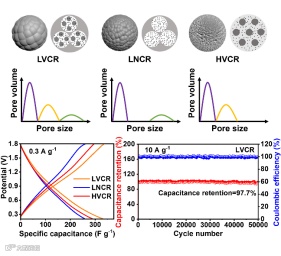 图1. LVCR、LNCR和HVCR的形貌、孔径分布和电化学性能图