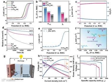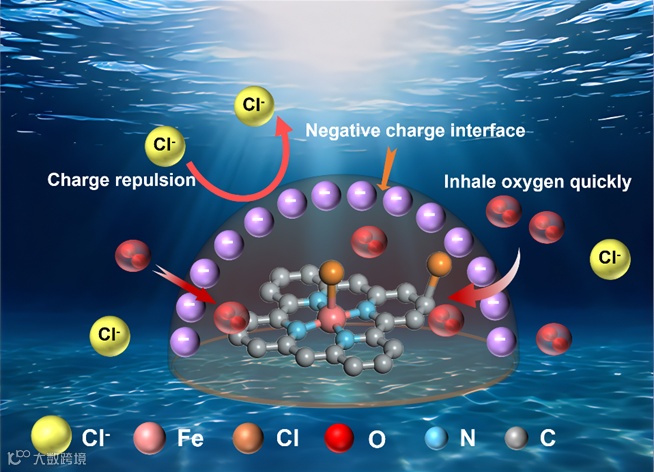 通过高电负性离子在活性金属位点的轴向配位,构筑局域负电荷界面,抑制海水电解液ORR过程中的Cl⁻吸附