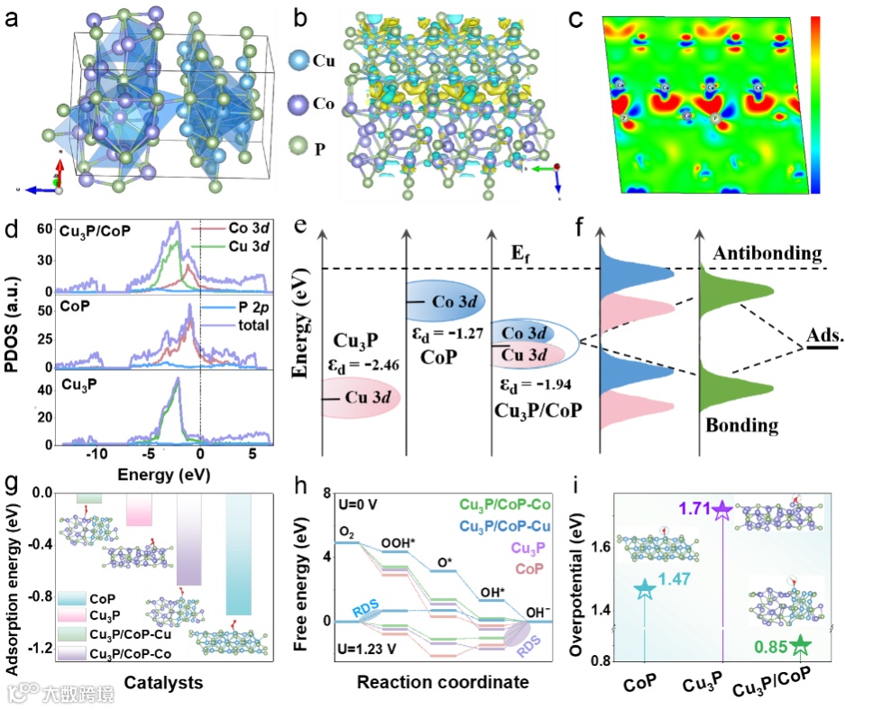 图6. Cu3P/CoP@NC催化剂模型结构和ORR活性增强机理。