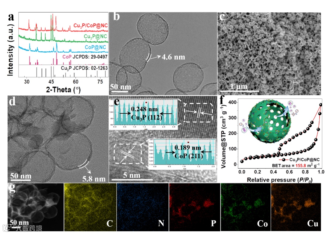图2. Cu3P/CoP@NC的形貌结构表征。