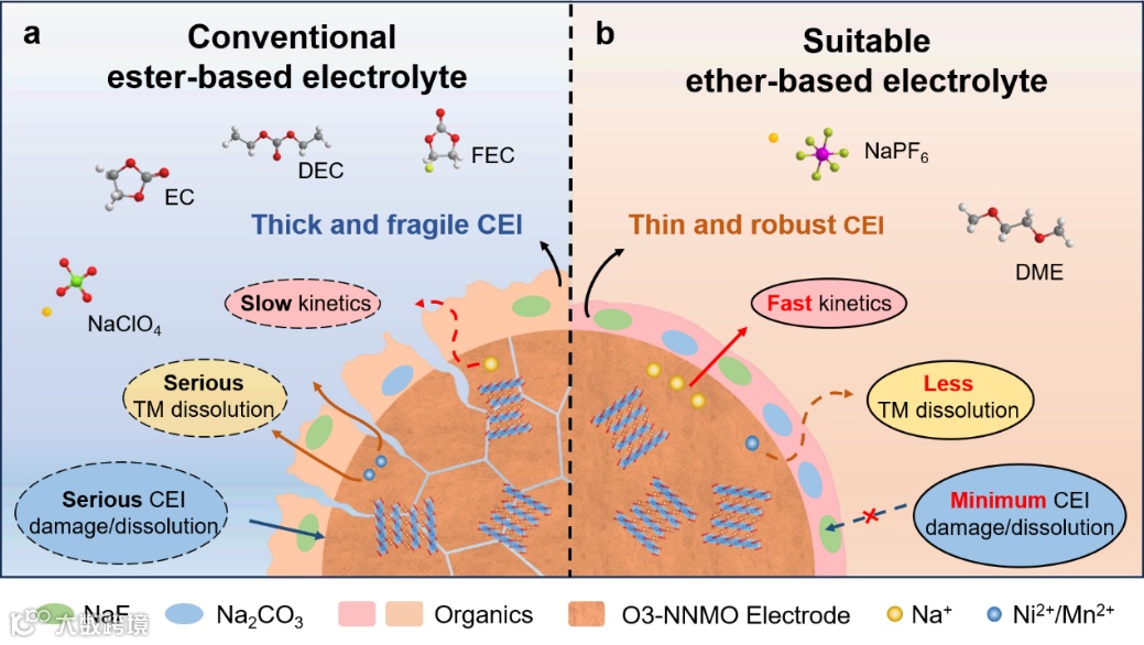 图1:电解液设计对O3-NNMO电池的影响示意图。