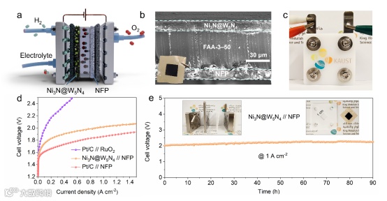 Ni3N@W5N4异质结构在碱性HER和AEMWE设备中表现出优异的催化性能和稳定性。