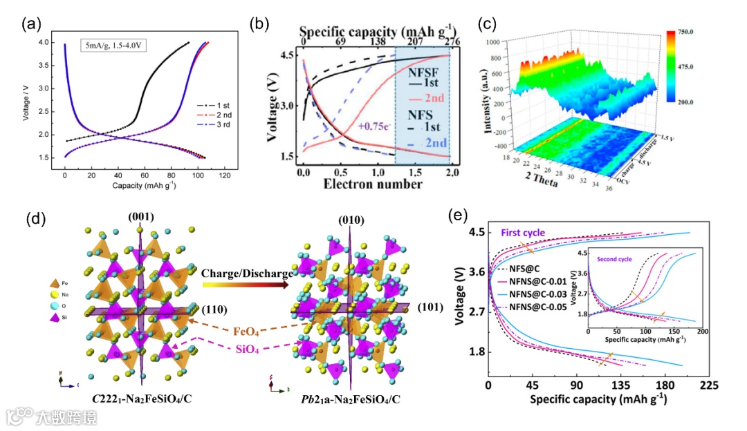 铁基硅酸盐材料的超高理论容量与2e-反应引人注目。但其工作电压不高,不能作为实际应用的阴极。通过引入具有高电位氧化还原对的金属离子,如Mn、Ni和Co,可以显著提高相应的电压输出。同时,引入具有强电负性的阴离子也可以提高工作电压。