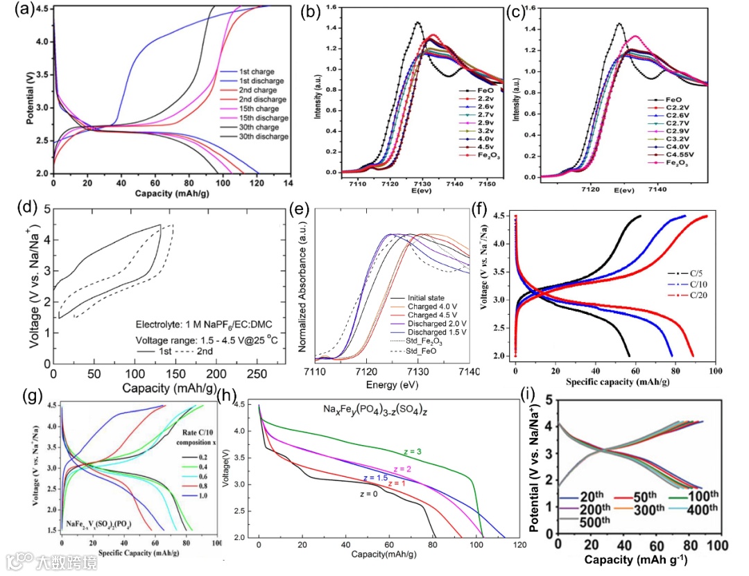 混合聚阴离子材料由于诱导效应提供了更高的工作电压。然而,不同阴离子基团在分解和结晶温度上的差异使得生产纯相的混合聚阴离子材料变得具有挑战性。如何整合具有更强诱导效应的不同阴离子以形成适合高效钠存储的结构,仍然是一个挑战。一些铁基聚阴离子正极材料显示出高于4.0 V vs Na/Na+的高氧化还原电位,因此需要开发高压电解液。基于PC的电解液和基于聚合物的固态电解液由于电化学窗口宽和与电极的充分接触,与高压基于铁的多阴离子阴极展现出高兼容性。此外,应该更多地采用计算方法来设计新的多阴离子框架,并洞察不同电极材料中的钠存储行为。