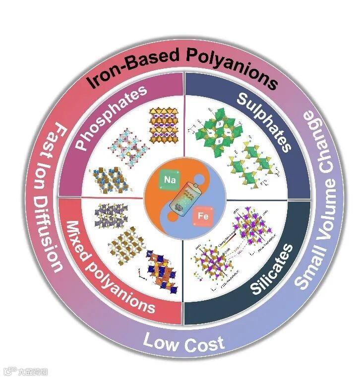 图1. 总结铁基聚阴离子材料优势及分类