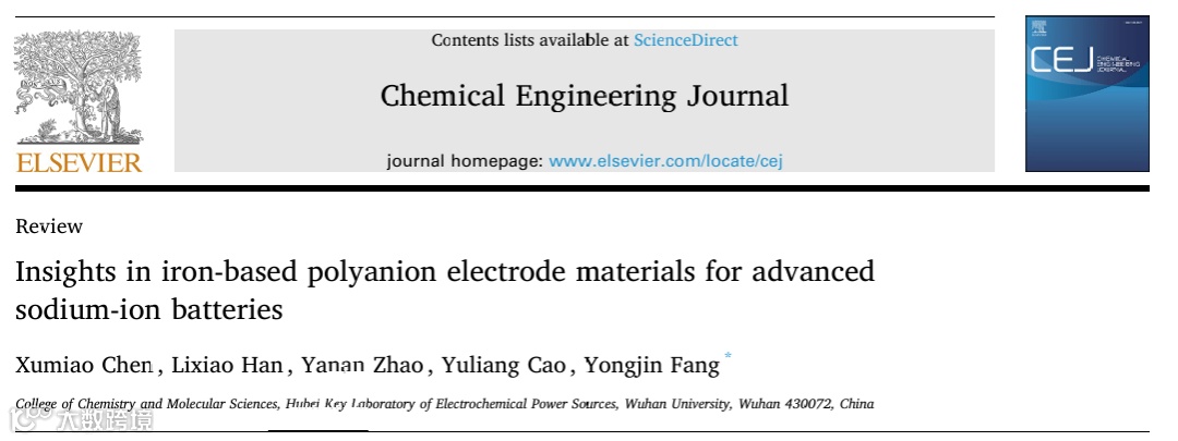 基于此,来自武汉大学的方永进教授,在国际知名期刊Chemical Engineering Journal上发表题为“Insights in iron-based polyanion electrode materials for advanced sodium-ion batteries”的综述文章,总结了用于钠离子电池的铁基聚阴离子电极材料的研究进展,包括磷酸盐、焦磷酸盐、硫酸盐、硅酸盐、混合聚阴离子等。该综述详细讲解了铁基聚阴离子储钠电极材料的结构-组成-性能关系,并对其电化学反应机理进行探讨,为设计更先进的电极提供一些启示。作者不仅总结了已报道的不同铁基聚阴离子的电化学性能,还从晶体学方面深入探讨了失效机理以及电化学性能提升机理。