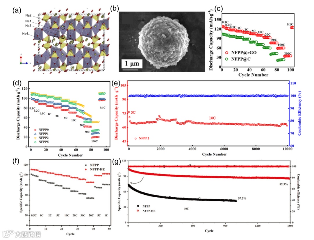 铁基焦磷酸盐的工作电压(3.0 V),高于磷酸盐,这是因为焦磷酸盐具有更强的诱导效应。然而,焦磷酸盐具有更高的相对分子质量,导致其容量较低。因此,发展基于铁的焦磷酸盐中的多电子反应以提高其容量是至关重要的。此外,离子掺杂/替代是提高焦磷酸盐电化学性能的有效方法。