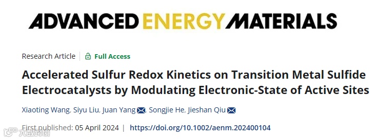 碳载过渡金属硫化物电催化剂的电子态调控,加速硫的氧化还原反应动力学
