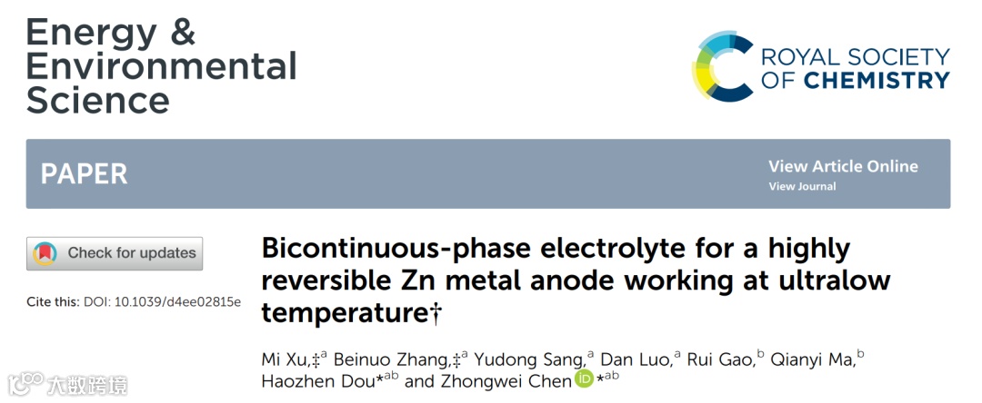 双连续相电解液实现超低温下高效稳定锌金属负极