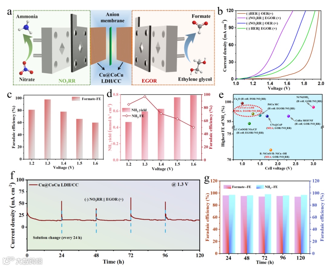 要点二:Cu@CoCu LDH/CC优异的NO3RR和 EGOR性能