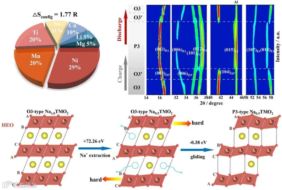 图1. 高熵O3相氧化物正极材料的组成(构型熵)、结构演变过程和滑移机理研究。