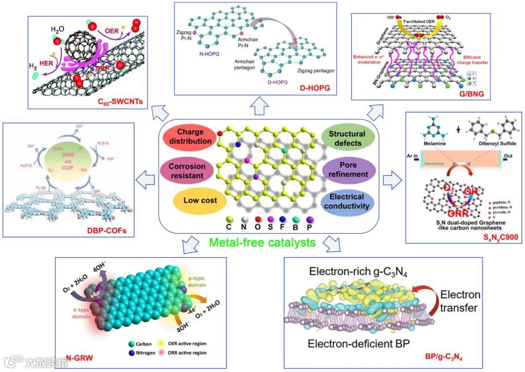 图3. 无金属碳基催化剂的优点及在ZABs的研究实例。