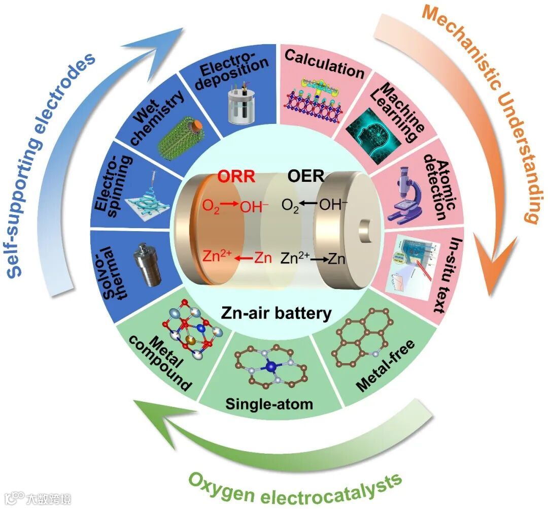 图1. 高性能可充电锌-空气电池:氧电催化剂、自支撑电极和机理。