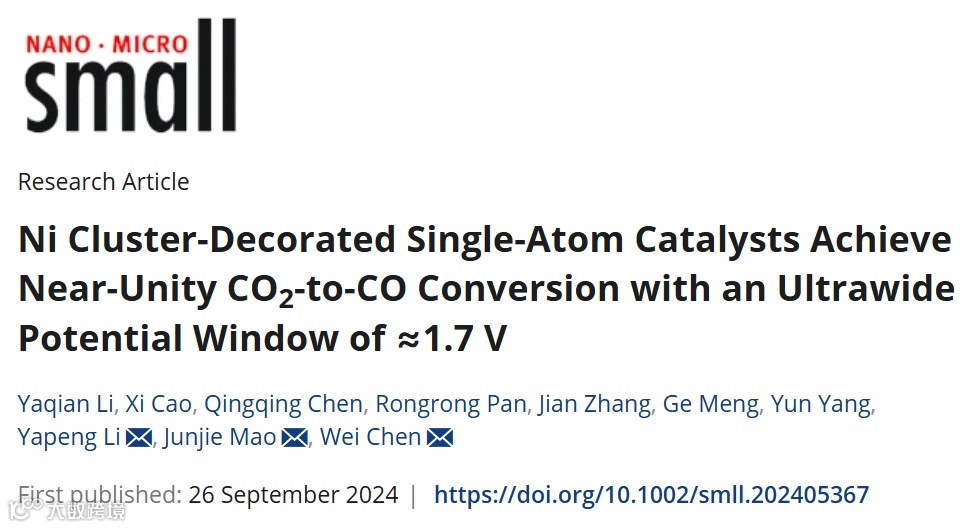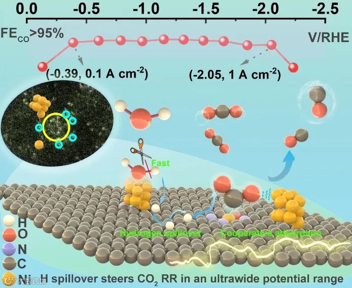 Ni团簇修饰单原子实现1.7 V电位窗口下近100% CO2到CO转化