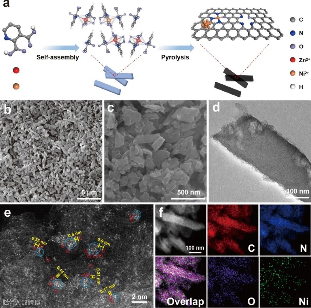 图1. NiNC&SA/N-C的合成过程和结构表征。