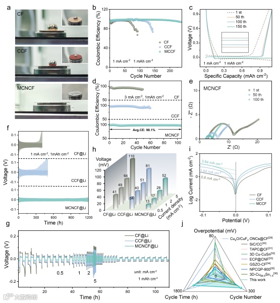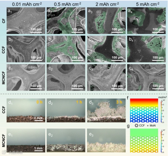 图3. MCNCF“自下而上”锂沉积行为的验证